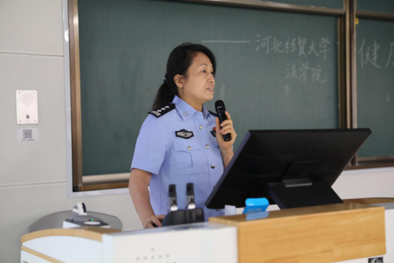 在交通出行安全环节,石家庄市公安局公交站前分局长途客运站派出所所长王辉发言。他强调“乘坐合法营运车辆,自觉抵制非法载客行为”,呼吁同学们从自身做起,维护校园周边交通秩序,共同营造安全、便捷的出行环境。