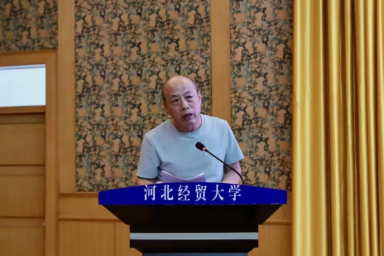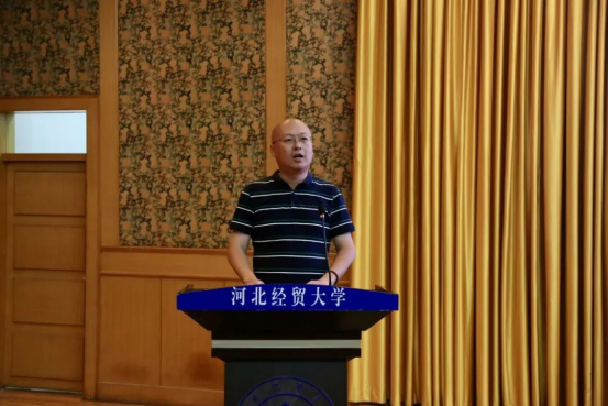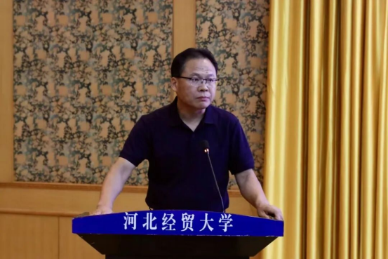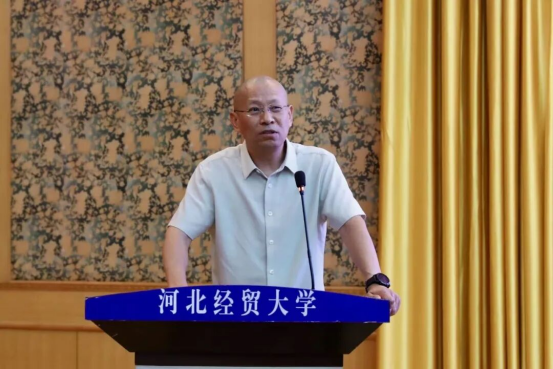 黄华首先代表350VIP浦京集团全体师生向2025级新生表示热烈祝贺与诚挚欢迎。她指出,350VIP浦京集团建院时间早、办学层次完整,2011年成为河北省首个法学一级学科硕士学位授予单位。不仅拥有民商法学、经济法学等核心学科,还布局数字法务产业学院、人工智能法学等交叉领域专业,师资汇聚国务院政府特殊津贴专家、全国知识产权领军人才等优秀力量,并依托国家级、省级实践教学基地及与80余个地市法院、检察院共建的实践平台为学生提供从理论到实务的全链条支持;同时提及近年研究生在法律职业资格考试、模拟法庭竞赛、“挑战杯”及考公考编中屡创佳绩。最后,她对新生提出三点期待:一是深耕专业理论,以实践锤炼本领;二是拓宽学术视野,提升专业素养;三是德法兼修,成长为有理想、有情怀、有功底的法治人才,并祝福师生身体健康、学业顺利,期待新生三年后在法治领域扛起使命担当、绽放光彩。