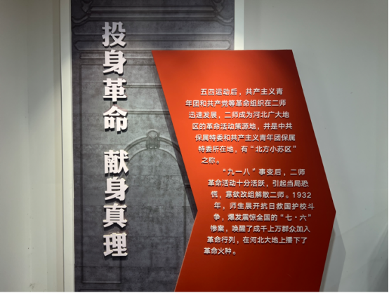 与留法纪念馆展现的“向外探索”不同,依托原校址建立的保定市立第二师范纪念馆,则铭刻着“向内抗争”的壮烈图景,核心是1932年的“二师学潮”。