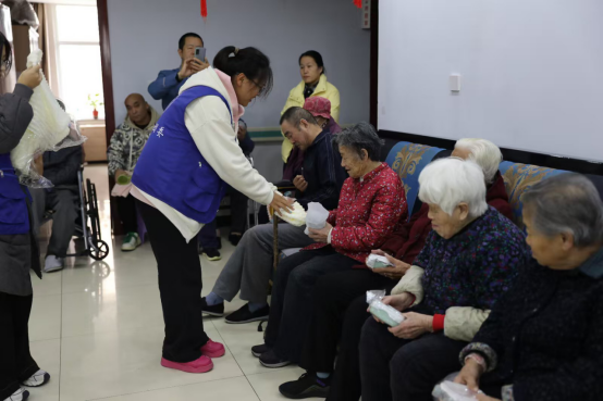 以行动践初心,用温情暖夕阳。在养老服务中心,志愿者们分工明确,在相关工作人员的带领下,进行了扫地、擦桌、收拾娱乐活动室等基础清扫工作,为老人们营造了一个干净舒适的环境。之后的表演环节中,志愿者们诚意满满、笑容洋溢地带来了手势舞表演,并耐心地为老人们进行手势舞教学,最后为他们分发了水杯、毛巾等礼物。志愿者们的清扫工作让老人们的居住环境变得更加干净舒适,精彩的表演也为养老院注入了活力,这让敬老爱老不止停留在言语,更落实在行动。
