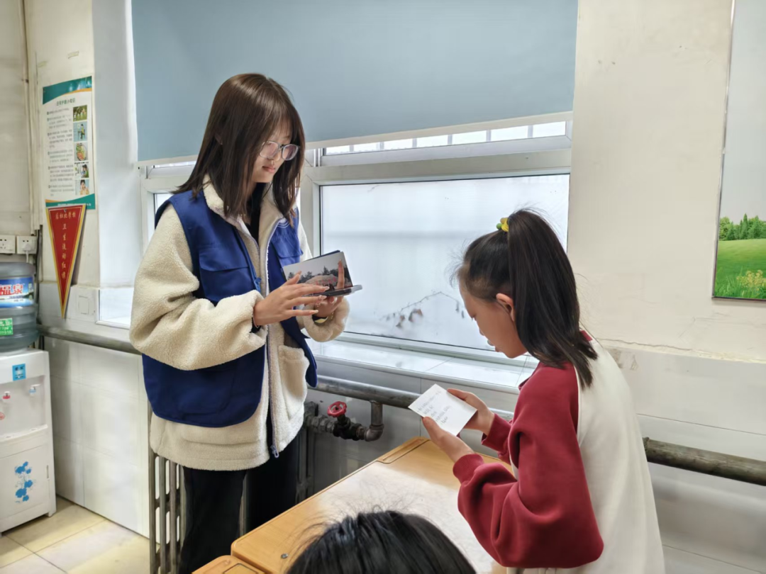 互动环节中,志愿者们设置了抽卡答题的知识竞答环节,卡片上的题目涵盖国家安全教育日日期、核心领域、公民义务等内容。学生们踊跃抽卡、积极作答,在趣味互动中巩固所学知识;志愿者们还为答对的同学准备了文具、挂件、明信片等小奖品,进一步激发了大家学习国家安全知识的热情,现场气氛热烈而有序。