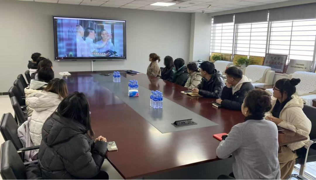 (经贸350VIP浦京集团师生认真观看欣诚公司的介绍视频)